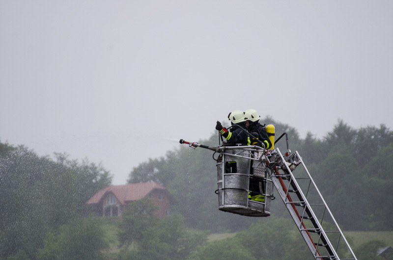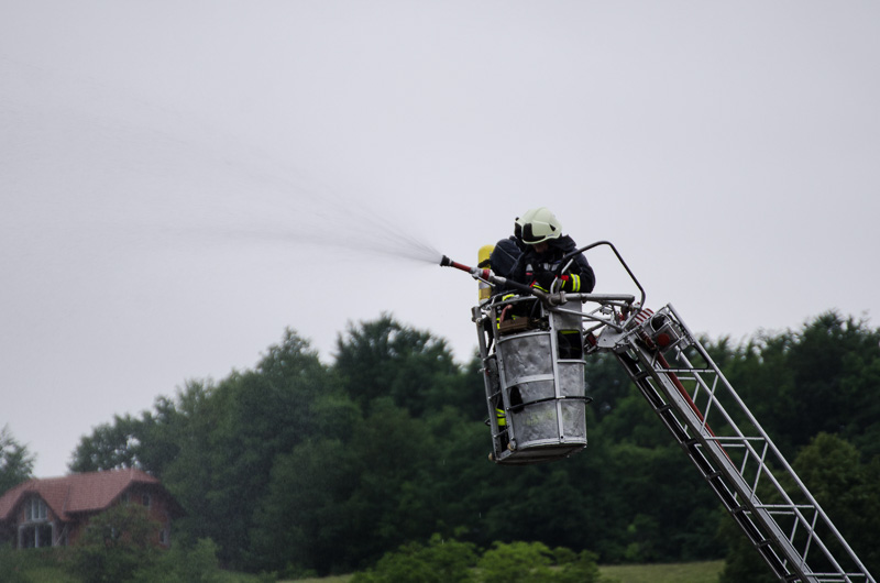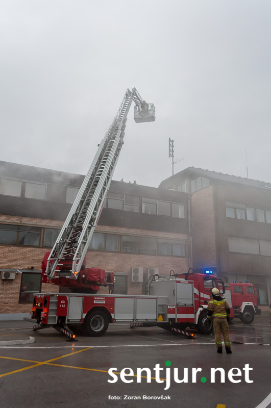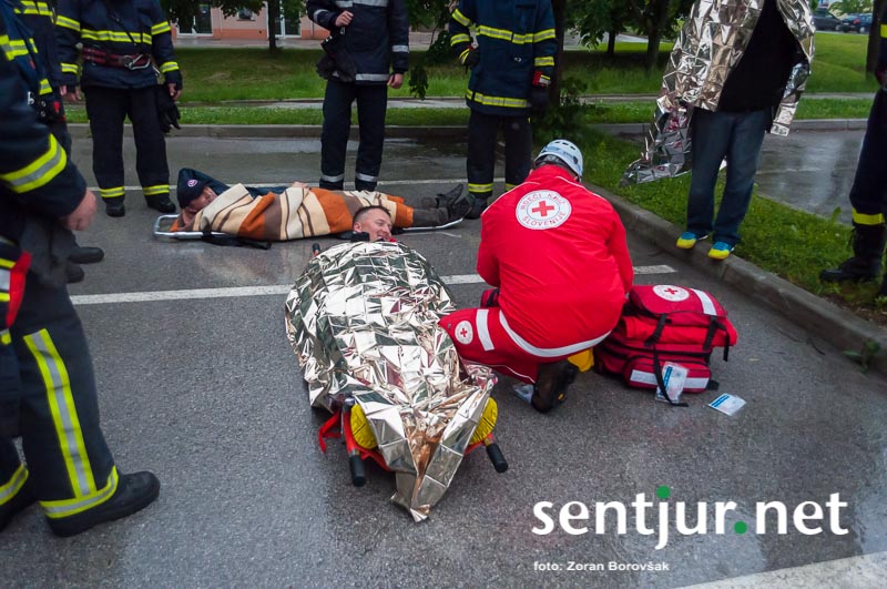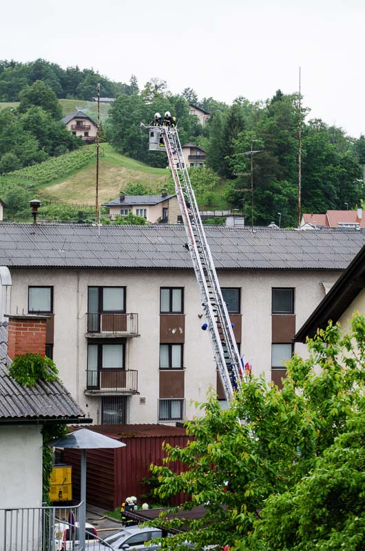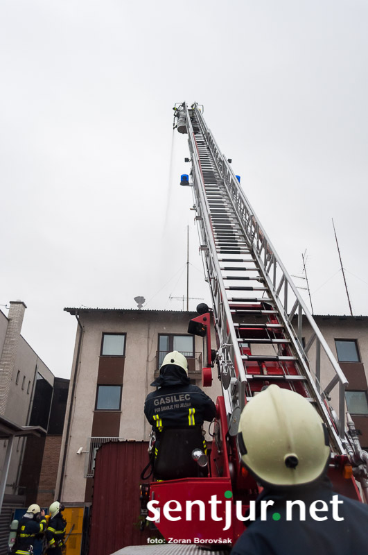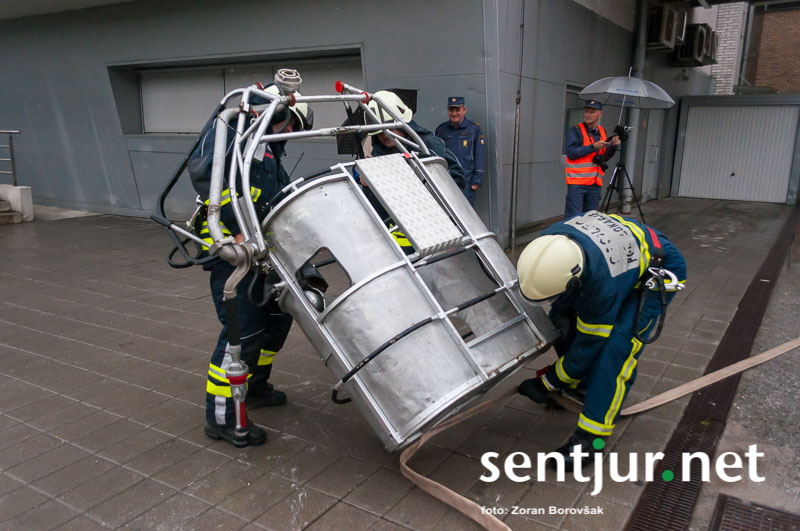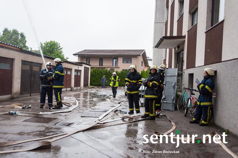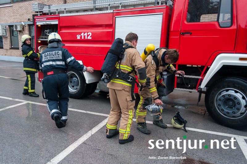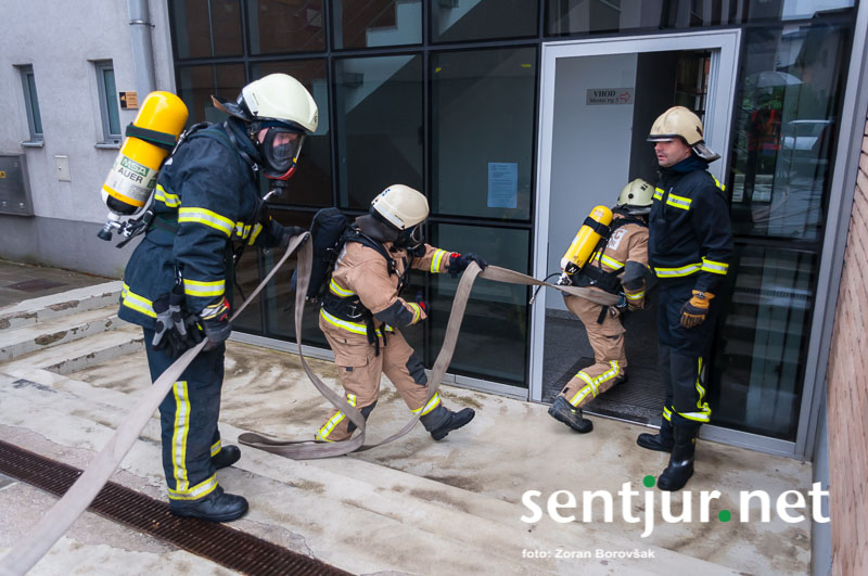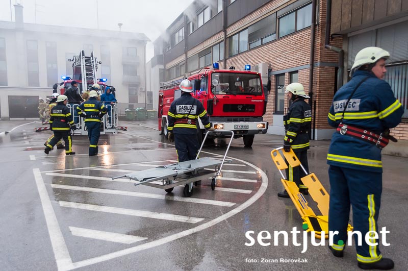 Ob prihodu enot so najprej usposobljeni in z dihalnimi napravami opremljeni gasilci vstopili v prostore, jih zavarovali, pregledali in evakuirali ujete. Nato so prispeli šmarski in celjski gasilci z lestvama. Prva je bila namenjena le gašenju, z drugo pa so iz občinske stavbe rešili še nekaj ujetih, ki so se zaradi gostega dima umaknili na streho. Na vaji so prav tako temeljito preizkusili hidrantni sistem na območju Mestnega trga. (Zoran Borovšak)