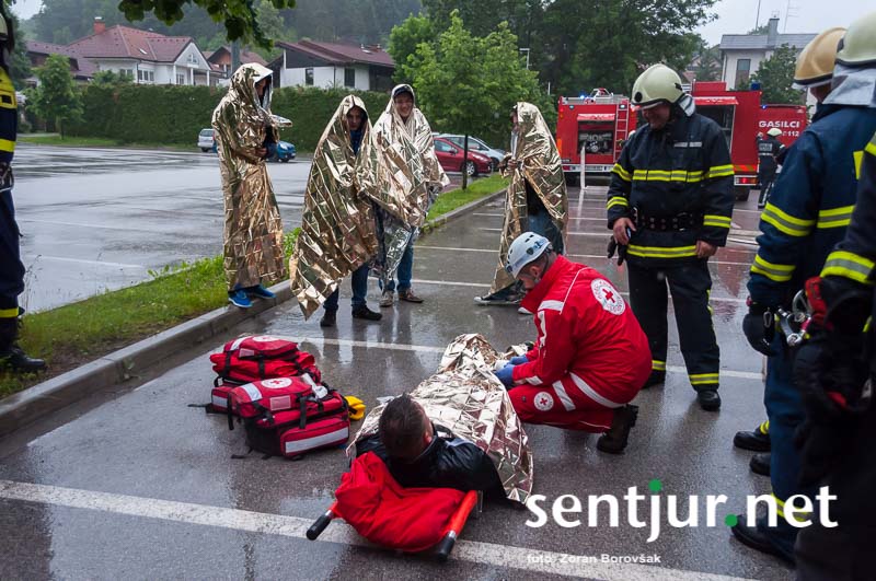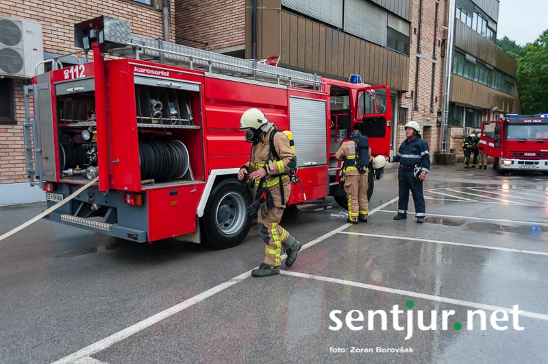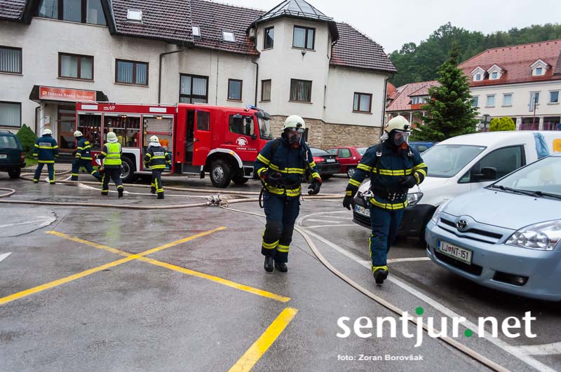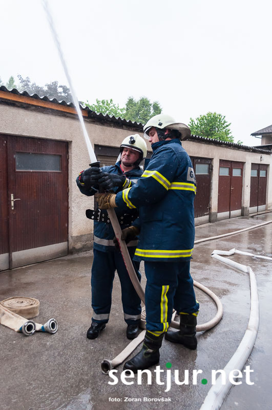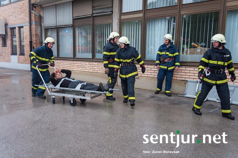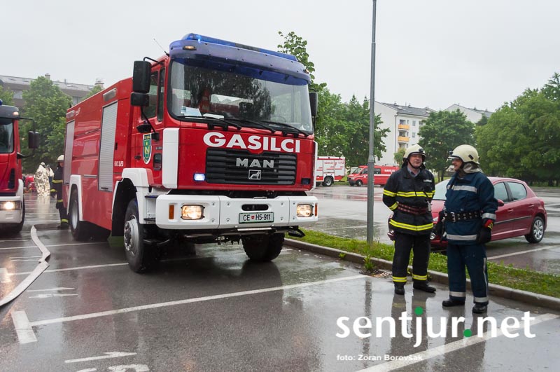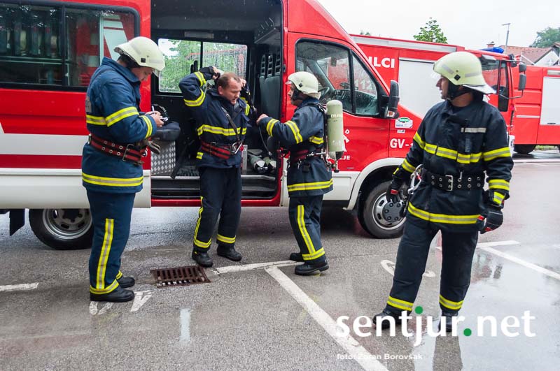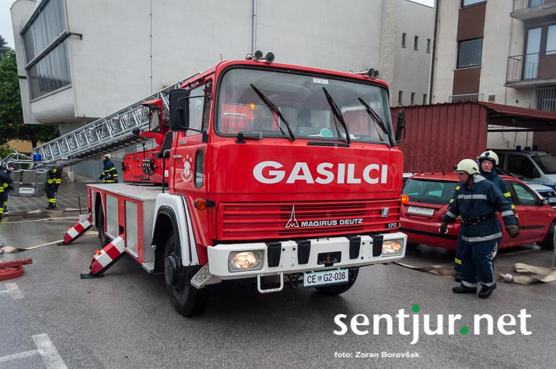 Šentjur, 23. 5. 2015 – Na deževno sobotno dopoldne, devet minut čez deveto, so se na strehi občinske stavbe oglasile sirene sistema javnega alarmiranja. Zavijajoč zvok sirene, ki je trajal eno minuto, je občanom sporočil nevarnost poplave, večjega požara, radiološke in kemične nevarnosti, nevarnosti vojaškega napada ter drugih nevarnosti. K sreči je bil to le poziv na požarno-reševalno vajo ob 60-letnici Gasilske zveze Šentjur. V vaji so sodelovale teritorialne gasilsko-reševalne enote iz občine Šentjur, Dobje in Šmarje pri Jelšah ter Poklicna gasilska enota Celje.