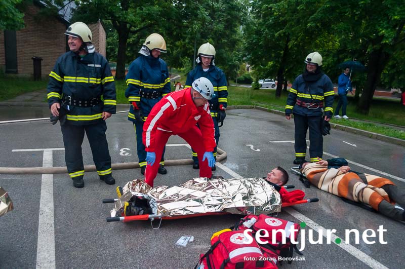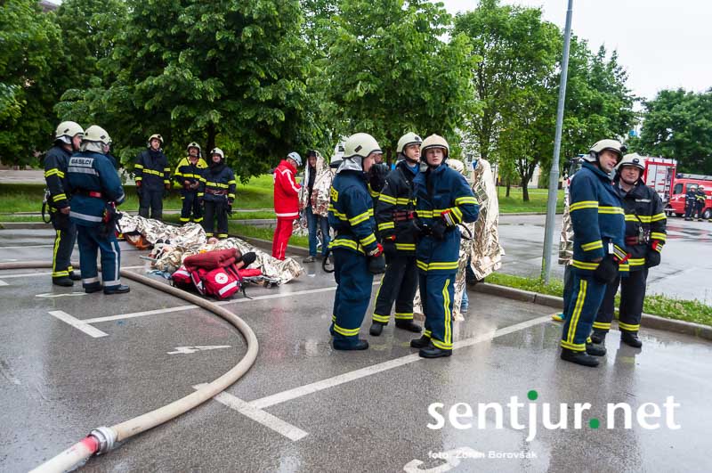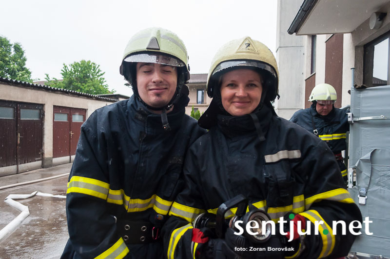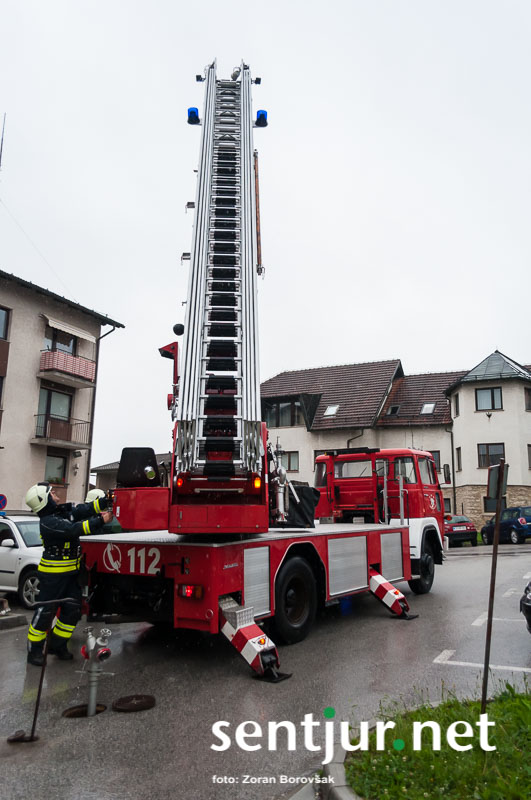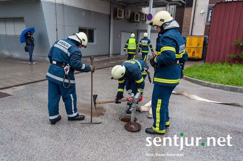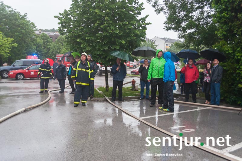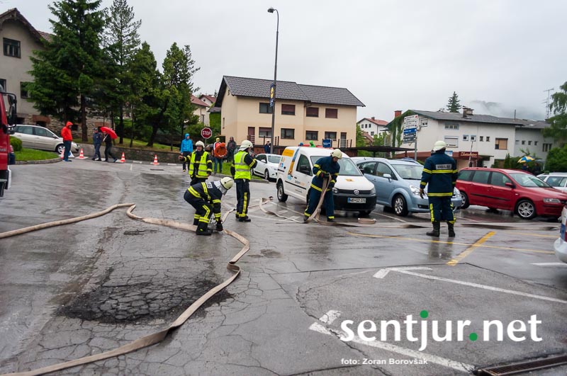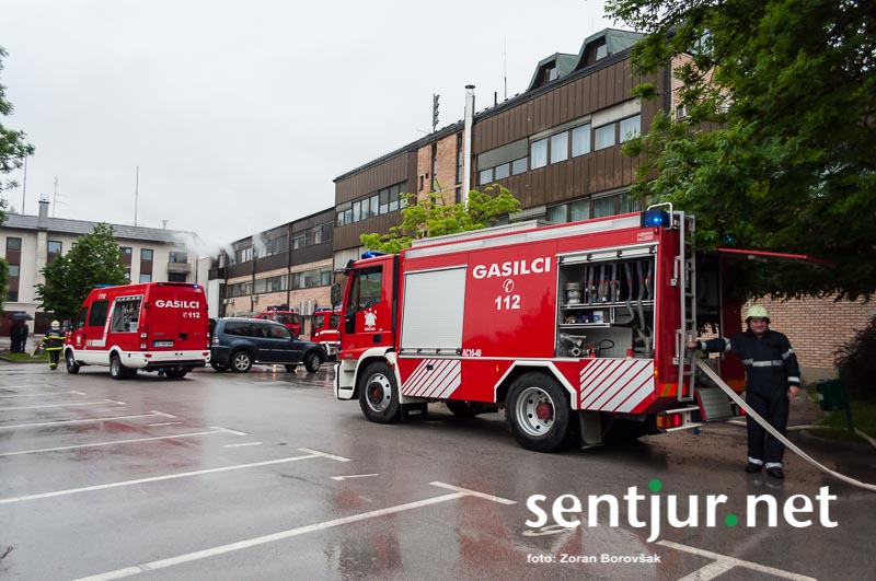 Šentjur, 23. 5. 2015 – Na deževno sobotno dopoldne, devet minut čez deveto, so se na strehi občinske stavbe oglasile sirene sistema javnega alarmiranja. Zavijajoč zvok sirene, ki je trajal eno minuto, je občanom sporočil nevarnost poplave, večjega požara, radiološke in kemične nevarnosti, nevarnosti vojaškega napada ter drugih nevarnosti. K sreči je bil to le poziv na požarno-reševalno vajo ob 60-letnici Gasilske zveze Šentjur. V vaji so sodelovale teritorialne gasilsko-reševalne enote iz občine Šentjur, Dobje in Šmarje pri Jelšah ter Poklicna gasilska enota Celje.