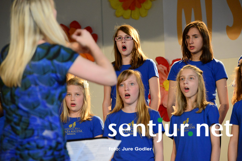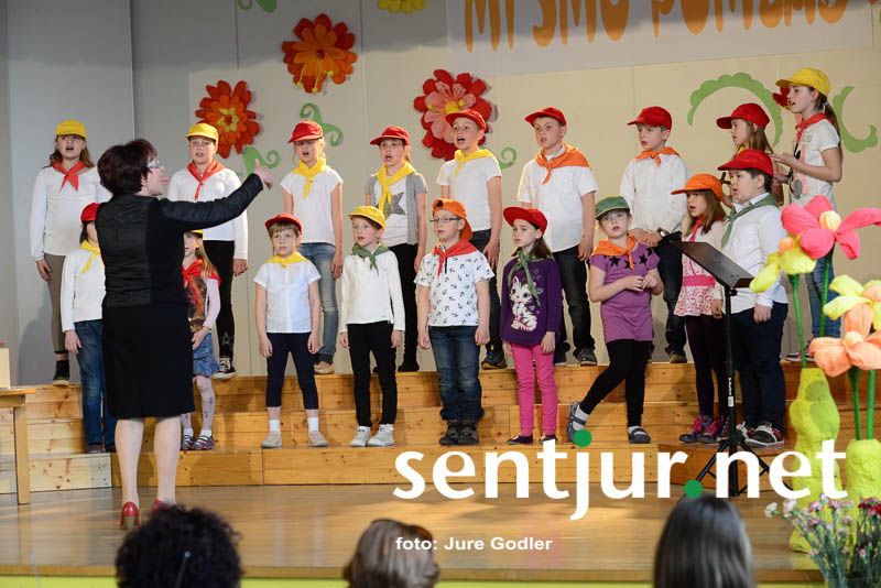 Blagovna, 16. 4. 2015 – Območna izpostava JSKD že vrsto let, kot uverturo v Šentjurjevo, organizira Območno revijo otroških in mladinskih pevskih zborov občin Šentjur in Dobje. Iz naslova območnega srečanja “Mi smo pomlad” bi lahko razbrali, da mladi pevci prinašajo tudi svež veter petja in predstavljajo prihodnost šentjurskega petja. Tokrat je prvič organizacijo prevzela Nastija Močnik, ki je nadomestila Anito Koleša. Program sta duhovito povezovala mlada Slivničana Anja Artiček in Vid Palčnik, čeprav se je zazdelo, da občinstvo ali ni razumelo njunih dovtipov ali pa so le čakali, kdaj bodo na vrsti njihovi otroci. Oder so okrasile učiteljice POŠ Blagovna, za kar se jim je organizatorica zahvalila.