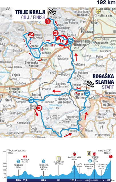 Start 3. etape bo v Rogaški Slatini jutri ob 11.30 uri. Promet bo od 11.30 oviran na relaciji Rogaška Slatina – Šentjur – Kozje – Golobinjek – Podčetrtek – Pristava – Rogaška Slatina – Pečica – Slovenska Bistrica – Oplotnica – Slovenske Konjice – Zreče – Padeški vrh – Zreče – Oplotnica – Slovenska Bistrica – Veliko Tinje – Trije Kralji. Cilj 3. etape bo predvidoma ob 16.30 uri na Treh Kraljih.