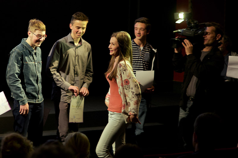 Šentjur, 14. 4. 2015 – Na Osnovni šoli Hruševec Šentjur so se letos odločili sodelovati na tekmovanju Slovenščina ima dolg jezik. Zato so se učenci skupaj z mentoricama Natašo Schell Bratina in Katjo Gajšek odločili posneti film Krt na netu, ki ima podlago v knjižni uspešnici knjige Skrivni dnevnik Jadrana Krta pisateljice Sue Townsend. Skupaj s filmom pa so na natečaj predložili tudi spis, kako je snemanje potekalo. Ideja o filmu se je porodila sedmošolki Maši Gregorčič, ki je nato prevzela funkcijo scenaristke in režiserke filma. Izhodiščno vprašanje scenaristov je bilo, v čem se sodobni najstnik razlikuje od tistega pred 33 leti, ko je bila knjiga napisana. Na njihovo presenečenje so ugotovili, da se današnji najstnik srečuje z istimi težavami, vendar pa na življenje danes v veliki meri vpliva sodobna tehnologija. Tako dnevnikov morda ne skrivamo več pod žimnico, ampak veliko svojih doživetij mladi delijo z drugimi preko računalnika, interneta in socialnih omrežij. Film je zmagal na tekmovanju v znanju Slovenščina ima dolg jezik, katerega namen je otrokom približati književnost na njim zanimiv in poučen način. Težava, s katero so se otroci soočili, je bila tudi ureditev avtorskih pravic. Tako so pridobili pravice za uporabo vseh dodanih glasbenih posnetkov skupin Nude, Mi2, Prime Loops, pa tudi pravice avtorice originalnega besedila Townsendove, ki pa je že pokojna in jim je v njenem imenu odgovoril sin Danny. Za dodatek pa so v priloženi spis, kako je snemanje potekalo, priložili še strip s fotkami iz ozadja. Za film so učenci OŠ Hruševec Šentjur prejeli zlato priznanje. (Jure Godler; foto Robert Gajšek)
