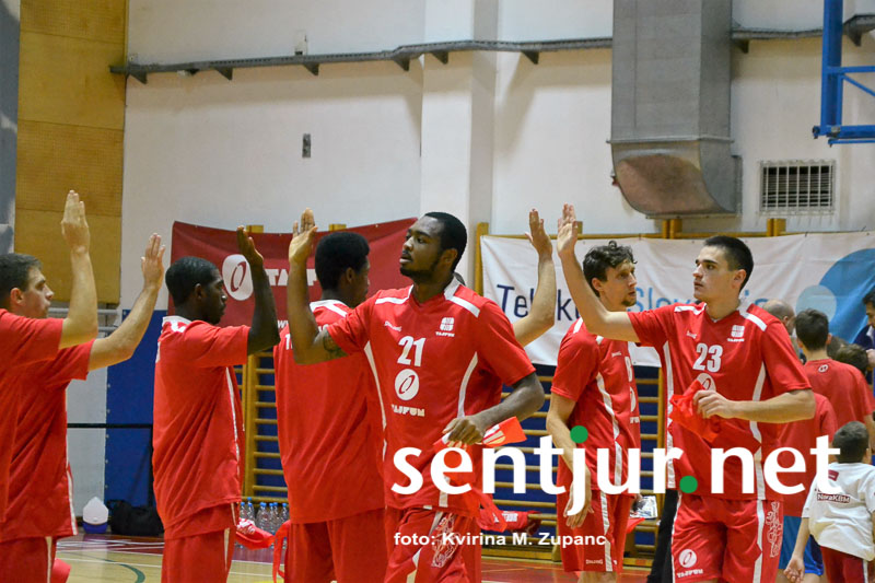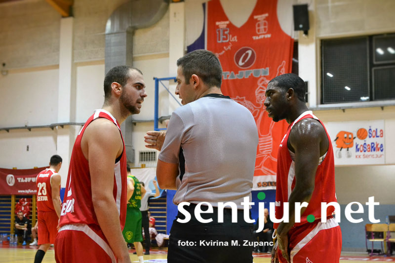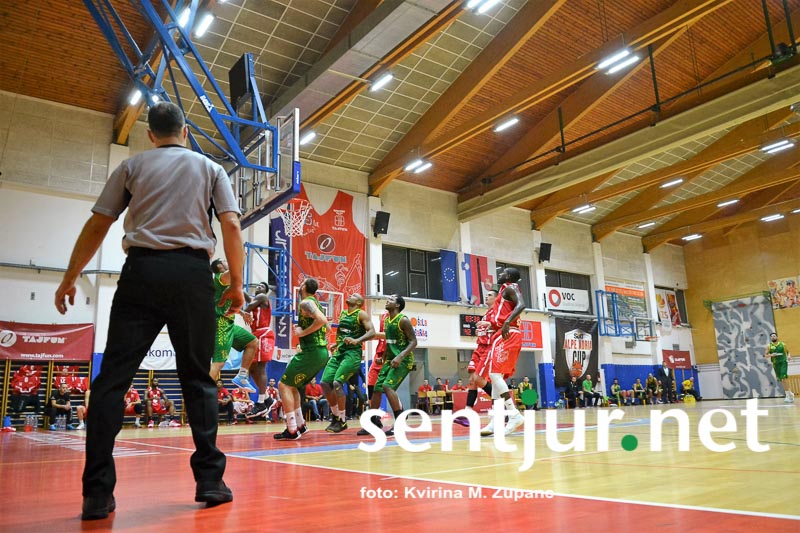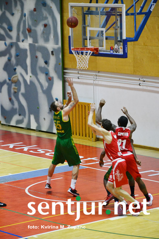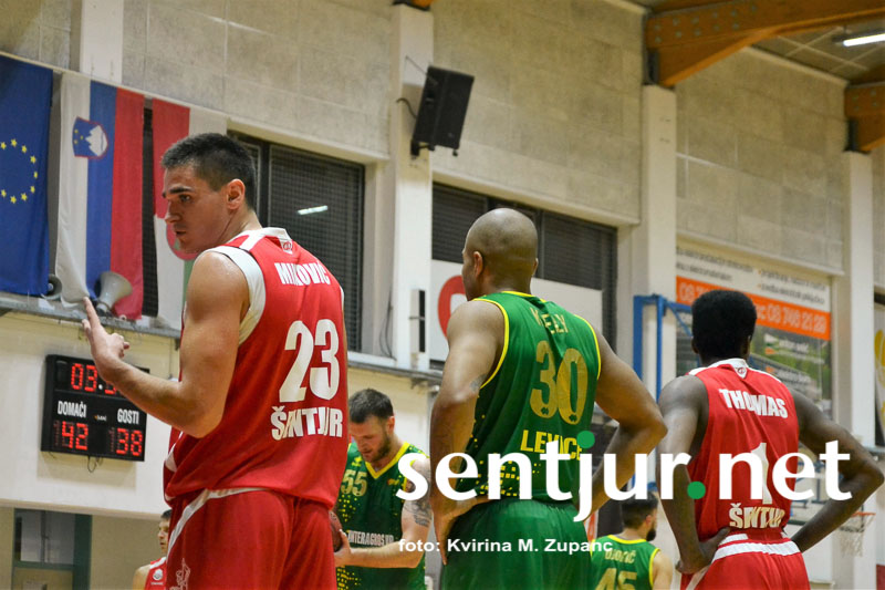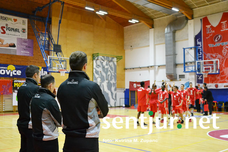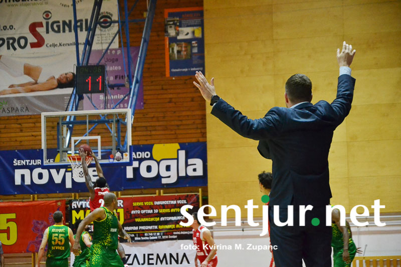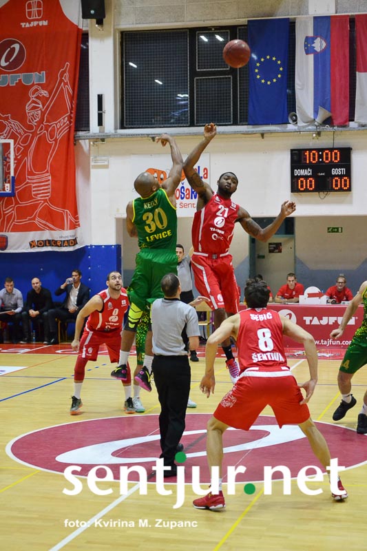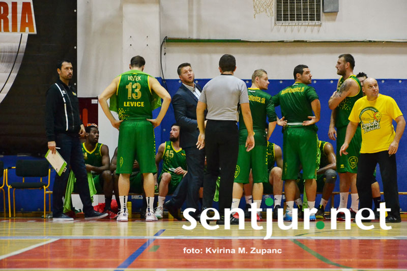 Bistveno premalo časa pa je imel novi trener za pripravo na tekmo z Levicam v evropskem Sixt Alpe Adria Cupu, saj je s šentjursko ekipo opravil le dva treninga, poleg tega pa na parket zaradi lažje poškodbe ni stopil Keon Moore. Z ekipo slovaškega prvenstva, ki jo vodi slovenski trener Teo Hojč, so naši na Slovaškem že igrali in izgubili. Tajfunovci so prvi polčas začeli zelo dobro ob glasni podpori Šentjurskih vitezov in na začetku celo povedli z delnim izidom 15:6. Z dobrimi akcijami Khaliqa Spicerja, Mirze Sarajlije in Milije Mikovića so naši v prvem polčasu pripravili lepo prednost 36:24. V drugem polčasu pa je bil popoln mrk šentjurskih košarkašev. Prednost se je iz minute v minuto topila, kjer so jih na koncu tretje četrtine gostje rezultatsko ujeli in povedli. Naši so morali ponovno priznati poraz proti Levicam in s sklonjenimi glavami oditi s parketa. Khaliq Spicer je tekmo končal s 13 točkami in 8 skoki, Žiga Fifolt je dodal 11 točk, Mirza Sarajlija pa 10 in 6 podaj. (Jure Godler, foto: Kvirina M. Zupanc)