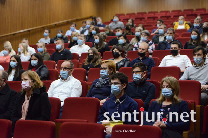 Šentjur, 18. 3. 2022 – Po rahljanju koronskih omejitev so se na stežaj odprla vrata številnim prireditvam, dogodkom in proslavam. Temu se je pridružil tudi župan mag. Marko Diaci, ki je tradicionalno povabil zlate maturante na podelitev priznanj. V lanskem letu tega zaradi ukrepov ni bilo možno izvesti, zato je v Ipavčev kulturni center Šentjur povabil odličnjake dveh generacij – generacije zaključnih letnikov 2019/2020 in 2020/2021. “Ne moremo vedeti, kaj vse ste zamudili v tem času. Zakaj vse ste bili prikrajšani ter kako drugačni so bili pogoji, ko ste zaključevali šolanje. Kakšen je bil okus ponosa in stisk, ob vsem, kar ste doživeli,” je uvodoma nagovorila zbrane povezovalka programa Polonca Jazbinšek.