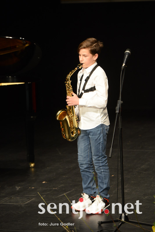 Za kulturno popestritev podelitve priznanj zlatim maturantom je poskrbela Neža Jager na klavirju, na saksafonu pa Urh Krč. Skupne fotografije so na voljo na tej povezavi. (Jure Godler)